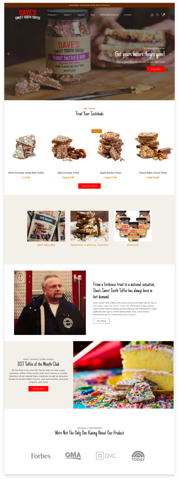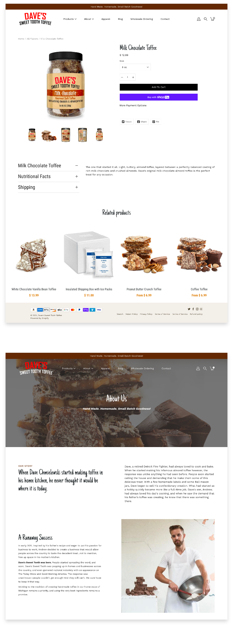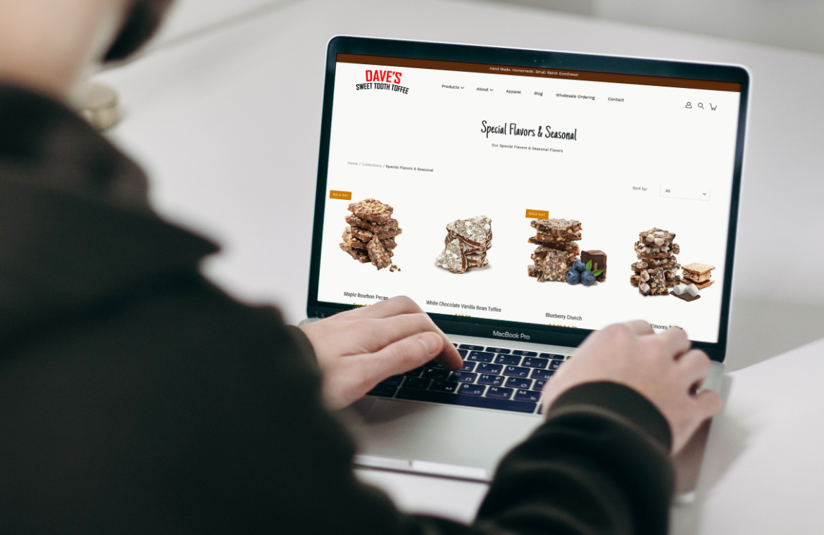Dave’s Sweet Tooth is a nationally recognized gourmet toffee company located in Harrison Township, Michigan. They came to us for help optimizing their online presence to better showcase their high quality, handmade toffee. In addition, the owner was looking for a way to more effectively tell the story of how his passion for baking started with his father Dave, a beloved Detroit Firefighter.