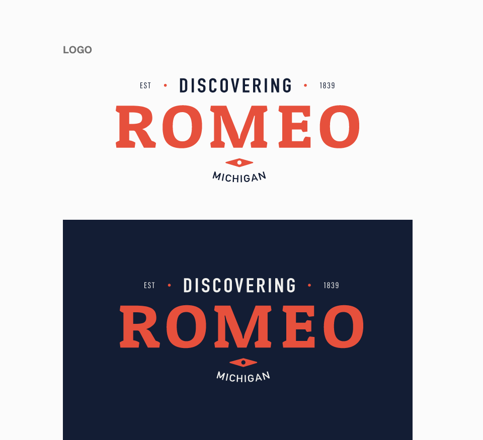 Our initial focus was on creating an identity that complemented Romeo’s established Peach Festival, but could stand on its own to showcase the character of the village. We chose a color palette that could work throughout the year and typefaces that felt modern, yet endearing to draw out the small-town vibe discovered when exploring the area.