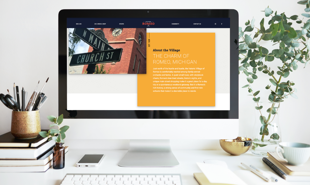 The Romeo Lions Club approached us with a need to digitally connect with the residents and visitors of the charming town of Romeo, Michigan through a new initiative called Discovering Romeo. This initiative was created to give visitors a guide to the area, specifically to discover year-round attractions, shops & restaurants, and to stay informed on upcoming events, both large and small.